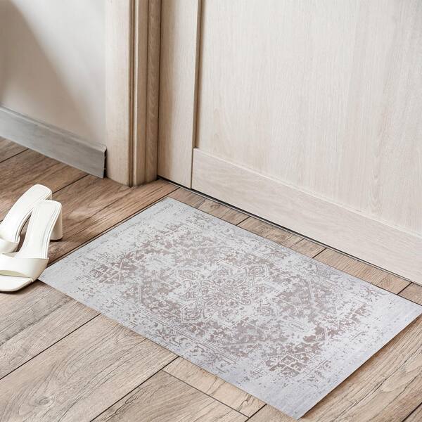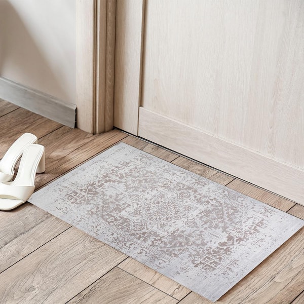 Himalayas Beige Creme 2 ft. x 3 ft. Machine Washable Modern Floral Abstract Polyester Non-Slip Backing Area Rug