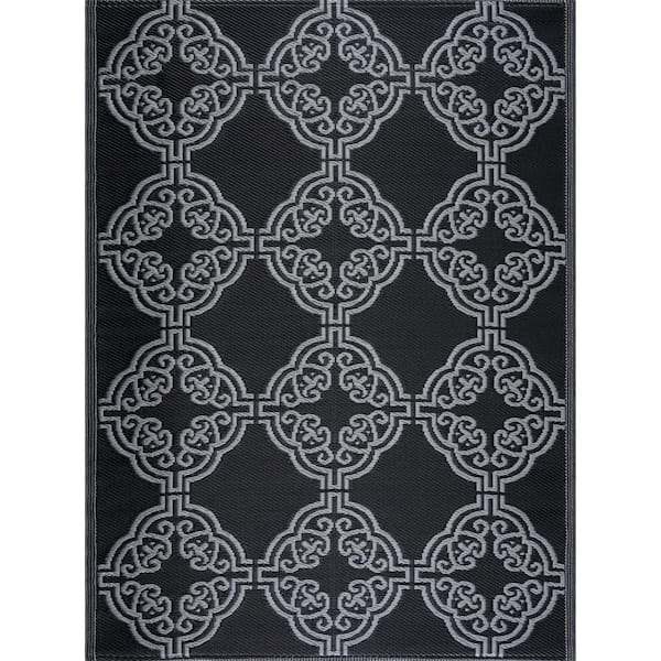 Marrakech Black Gray 6 ft. x 9 ft. Reversible Recycled Plastic Indoor/Outdoor Area Rug-Floor Mat