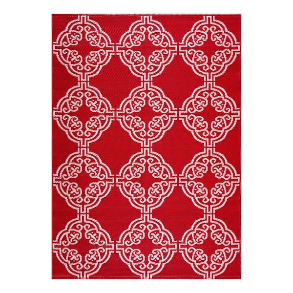 Marrakech Red White 5 ft. x 7 ft. Reversible Recycled Plastic Indoor/Outdoor Area Rug-Floor Mat