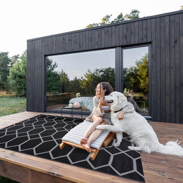 Miami Black Gray 8 ft. x 10 ft. Reversible Recycled Plastic Indoor/Outdoor Area Rug-Floor Mat
