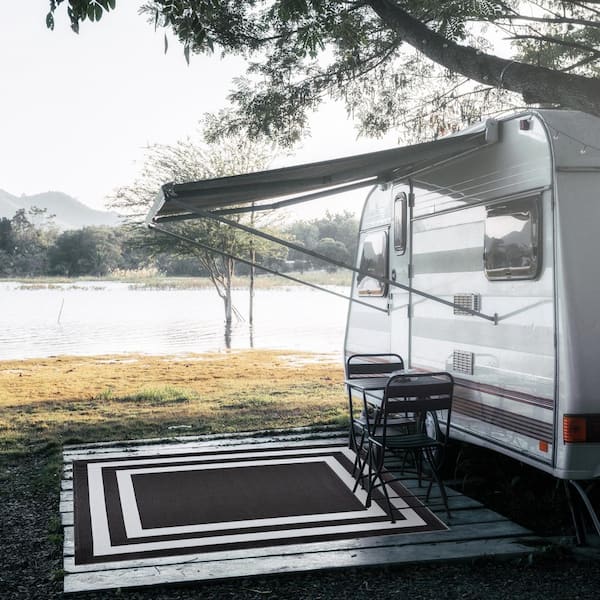 Paris Black White 6 ft. x 9 ft. Reversible Recycled Plastic Indoor/Outdoor Area Rug-Floor Mat