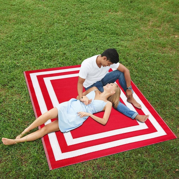 Paris Red White 6 ft. x 9 ft. Modern Plastic Indoor/Outdoor Area Rug