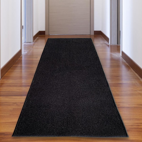 Solid Black Color 31 in. Width x Your Choice Length Custom Size Roll Runner Rug/Stair Runner