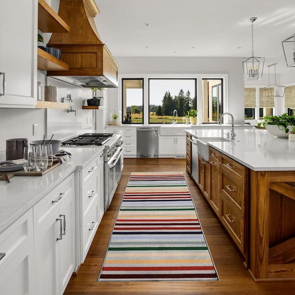 Stripes Multi Color 31 in. Width x Your Choice Length Custom Size Roll Runner Rug/Stair Runner