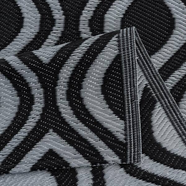 Venice Black Gray 5 ft. x 7 ft. Reversible Recycled Plastic Indoor/Outdoor Area Rug-Floor Mat