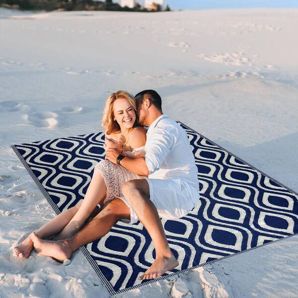 Venice Navy and Creme 10 ft. x 14 ft. Folded Reversible Recycled Plastic Indoor/Outdoor Area Rug-Floor Mat