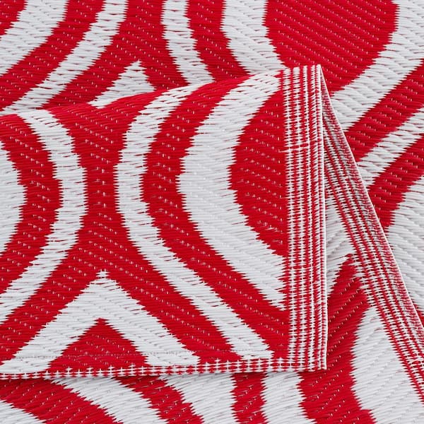 Venice Red White 8 ft. x 10 ft. Reversible Recycled Plastic Indoor/Outdoor Area Rug-Floor Mat