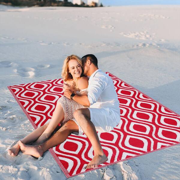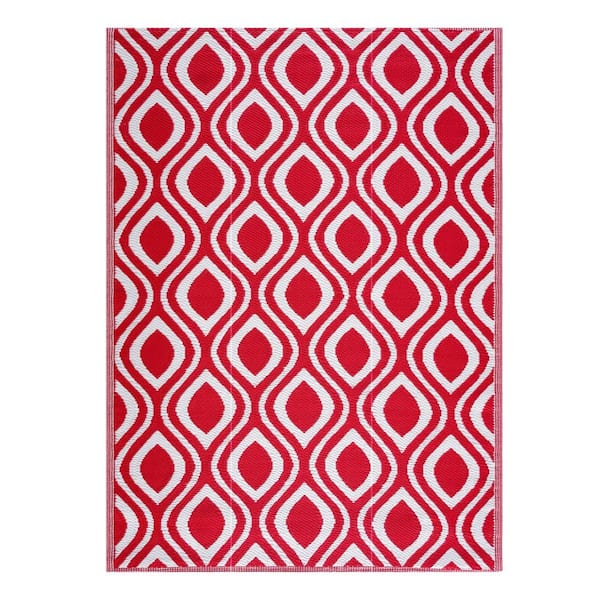 Venice Red and White 9 ft. x 12 ft. Folded Reversible Recycled Plastic Indoor/Outdoor Area Rug-Floor Mat