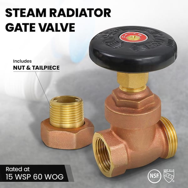 1-1/2 in. Brass Steam Radiator Gate Valve FIP x Male Union, with Molded Thermal Plastic Handle