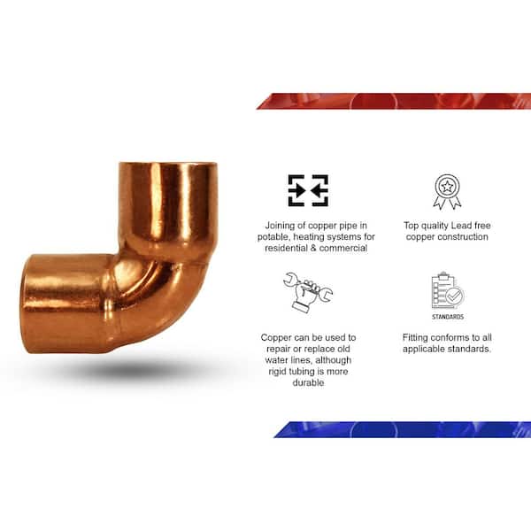 1-1/2 in. Copper C x C Short Radius 90° Elbow Fitting with 2 Solder Cups (5-Pack)