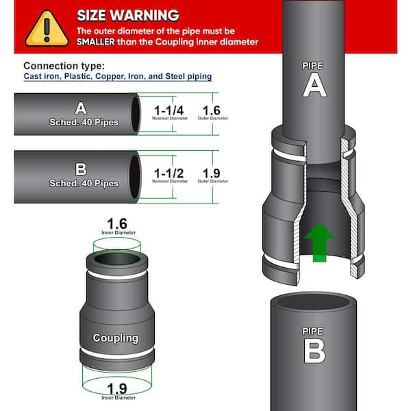 1-1/2 in. x 1-1/4 in. PVC Flexible Reducing Coupling with Stainless Steel Clamps