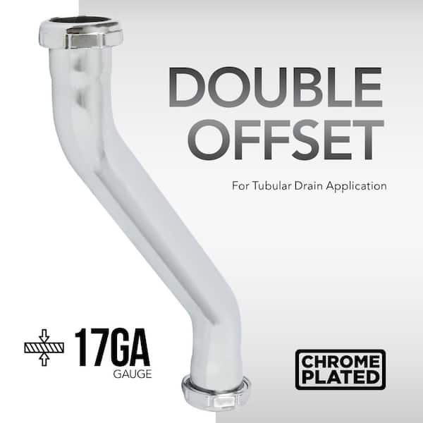1-1/4 in. x 12 in. Chrome Plated Brass Double Offset for Tubular Drain Applications, 17GA