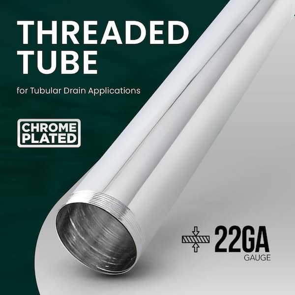 1-1/4 in. x 8 in. Brass Threaded Tube for Tubular Drain Applications, 22GA, Chrome Plated