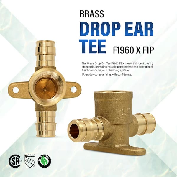 1/2 in. 90 -Degree PEX A x FIP Expansion Pex Drop Ear Tee, Lead Free Brass For Use in Pex A-Tubing (Pack of 5)