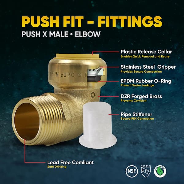 1/2 in. Brass Push to Connect Push x Male 90-Degree Elbow Pipe Fitting, for PEX, Copper and CPVC Piping