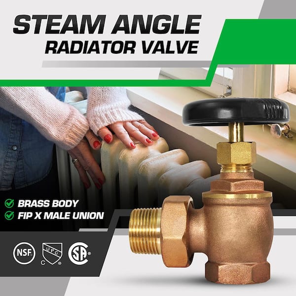 1/2 in. Brass Steam Angle Radiator Valve FIP x Male Union, with Molded Thermal Plastic Handle