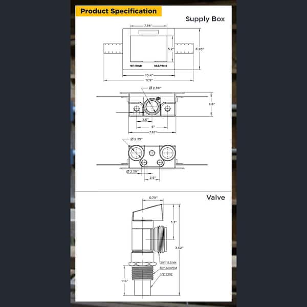 1/2 in. CPVC Brass Valve Fittings in White ABS Plastic washing Machine Dual Outlet Box with Hammer Arrester
