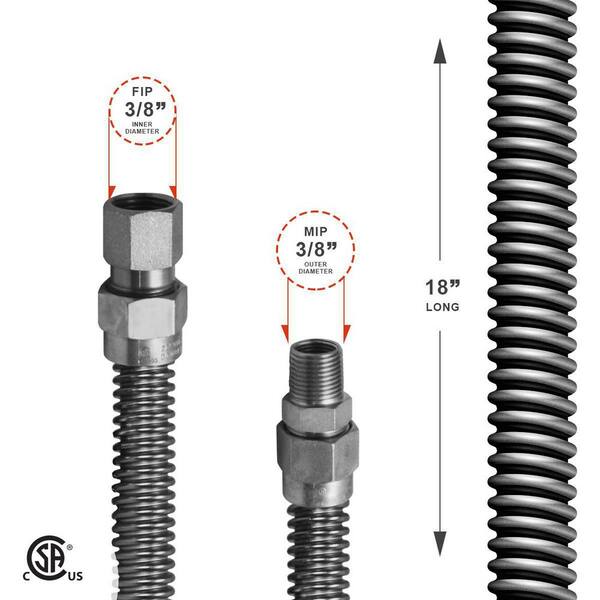 1/2 in. OD x 3/8 in. ID x 1.5 ft. Stainless Steel Flexible Gas Connector for Dryer/Water Heater 3/8 in. FIP x MIP