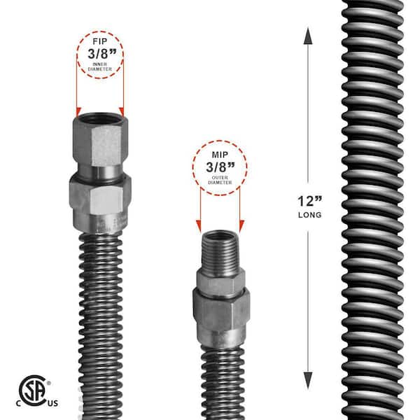 1/2 in. OD x 3/8 in. ID x 1 ft. Stainless Steel Flexible Gas Connector for Dryer/Water Heater, 3/8 in. FIP x MIP Fitting
