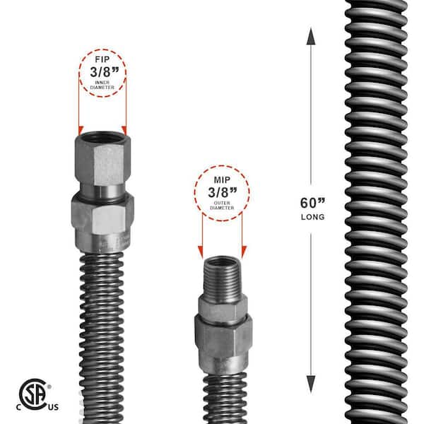 1/2 in. OD x 3/8 in. ID x 5 ft. Stainless Steel Flexible Gas Connector for Dryer/Water Heater, 3/8 in. FIP x MIP Fitting