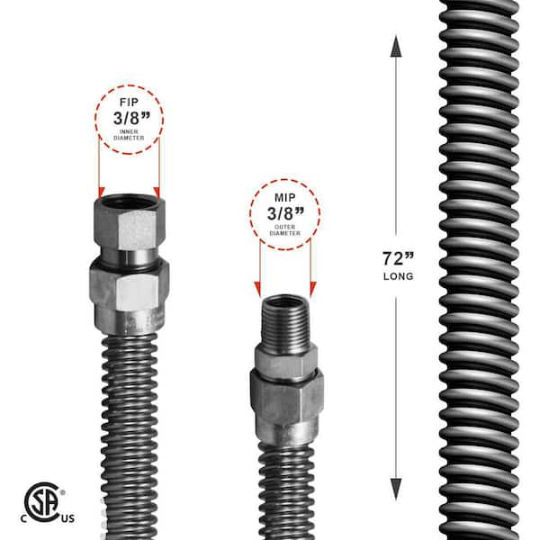 1/2 in. OD x 3/8 in. ID x 6 ft. Stainless Steel Flexible Gas Connector for Dryer/Water Heater, 3/8 in. FIP x MIP Fitting