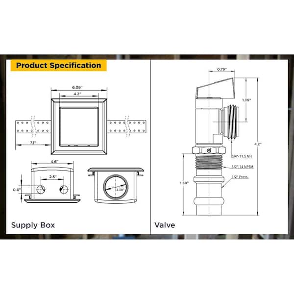 1/2 in. Press Brass Valve Fittings in White ABS Plastic Washing Machine Compact Outlet Box
