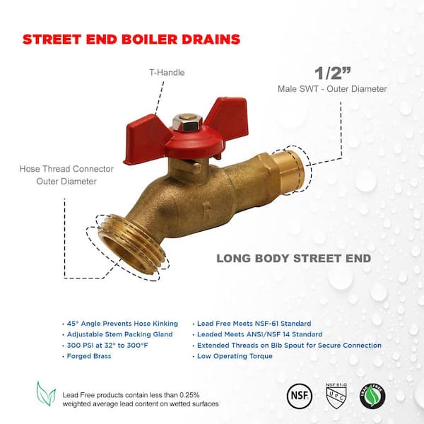 1/2 in. SWT/PRESS Street End Boiler Drain Valve, Brass Lever Type