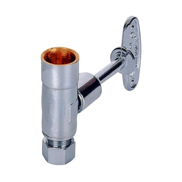 1/2 in. SWT x 3/8 in. Comp Water Supply Stop Valve with Quarter Turn Loose Key; Lead Free Chrome Plated Brass