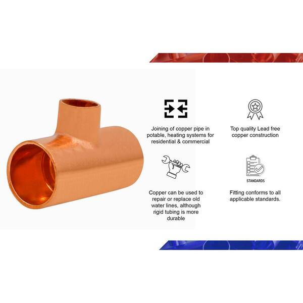 1/2 in. x 1/2 in. x 1/4 in. Copper Reducing Tee Fitting with Solder Cups (5-Pack)
