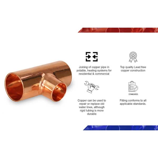 1/2 in. x 1/2 in. x 3/8 in. Copper Reducing Tee Fitting with Solder Cups (5-Pack)