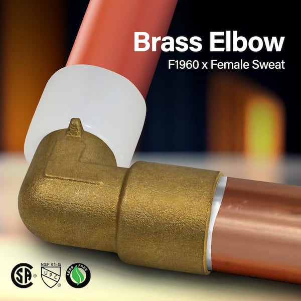 1/2 in. x 3/4 in. Pex A x Female Sweat Expansion Pex Elbow, Lead Free Brass 90° for Use in Pex A-Tubing