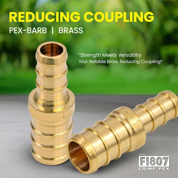 1/2 in. x 3/8 in. Brass PEX Straight Reducing Coupling Barb Pipe Fitting (5-Pack)