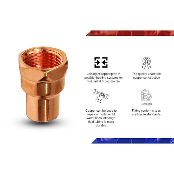 1 in. Copper Female Adapter Fitting with Sweat x FIP Connection (5-Pack)
