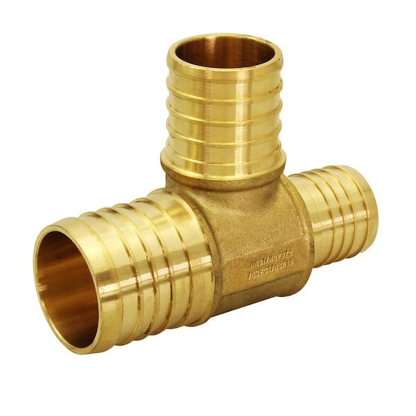 1 in. x 3/4 in. x 3/4 in. Brass PEX Barb Reducing Tee Pipe Fittings (5-Pack)