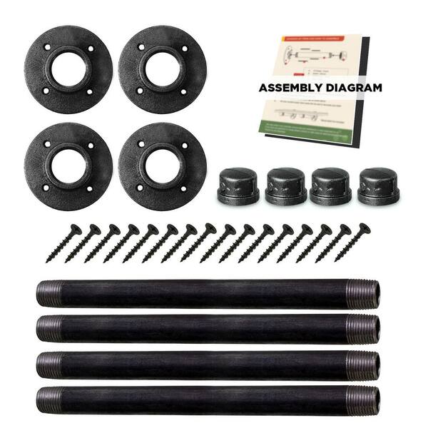 12 in. Black Industrial Pipe Shelf Bracket (4-Pack)