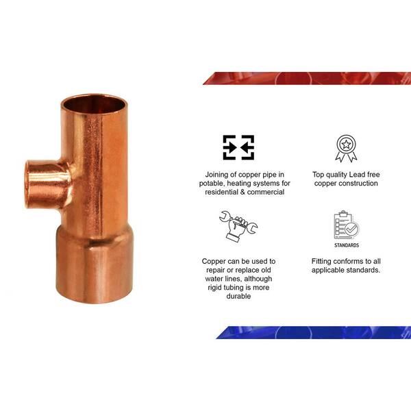 2 in. x 1-1/4 in. x 1 in. Copper Reducing Tee Fitting with Solder Cups (5-Pack)