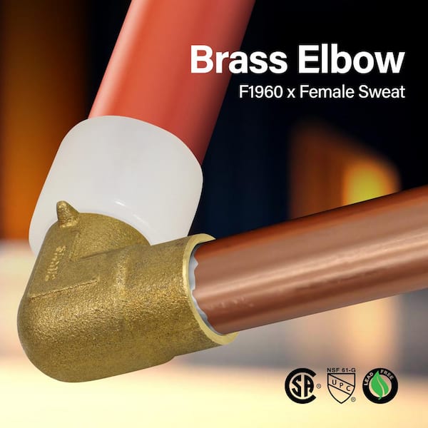 3/4 in. x 1/2 in. Pex A x Female Sweat Expansion Pex Elbow, Lead Free Brass 90° for Use in Pex A-Tubing