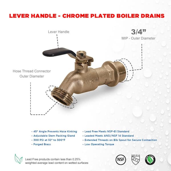 3/4 in. x 45° Angled Chrome Plated Faucet with Hose Bib, No Hose Kink, Lever Handle, NPT