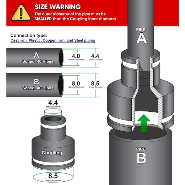 8 in. x 4 in. PVC Flexible Reducing Coupling with Stainless Steel Clamps