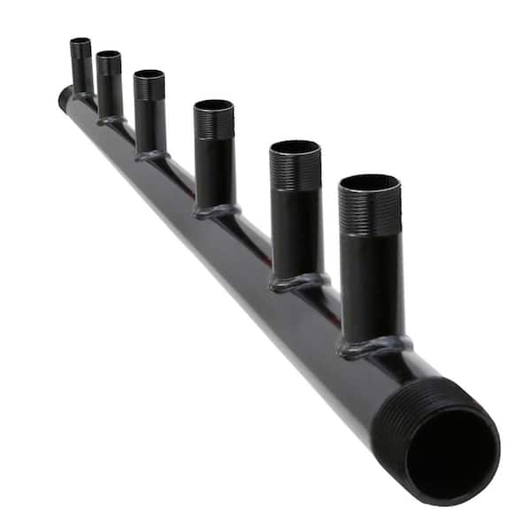 Black Steel Manifold for Boiler Room Heating System, 1-1/2 in. Main Pipe with 6-Branches of 1 in. 7 in. Spacing