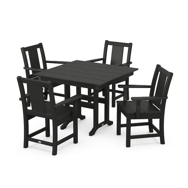 5-Piece Prairie Farmhouse Plastic Square Outdoor Dining Set in Black