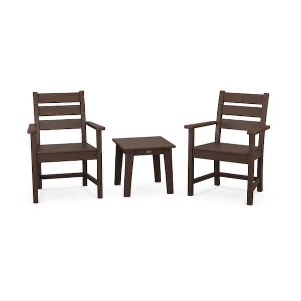 Grant Park 3-Piece Farmhouse Plastic Outdoor Patio Conversation Set in Mahogany