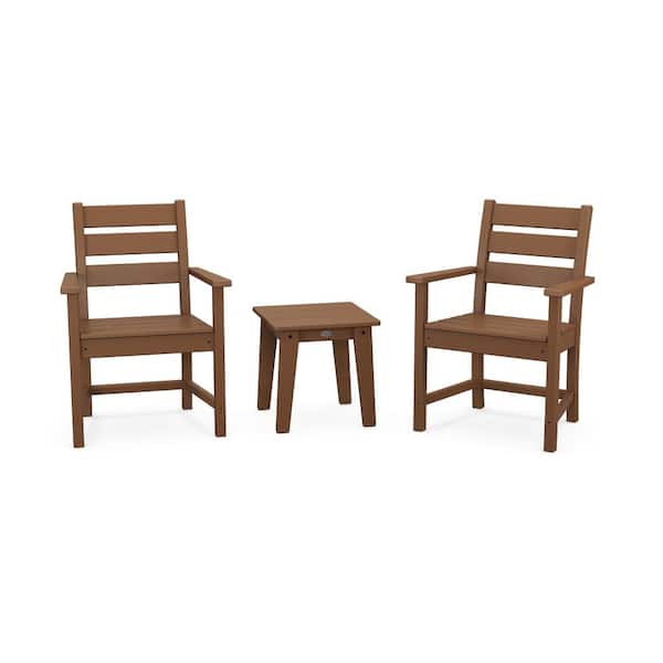 Grant Park 3-Piece Farmhouse Plastic Outdoor Patio Conversation Set in Teak