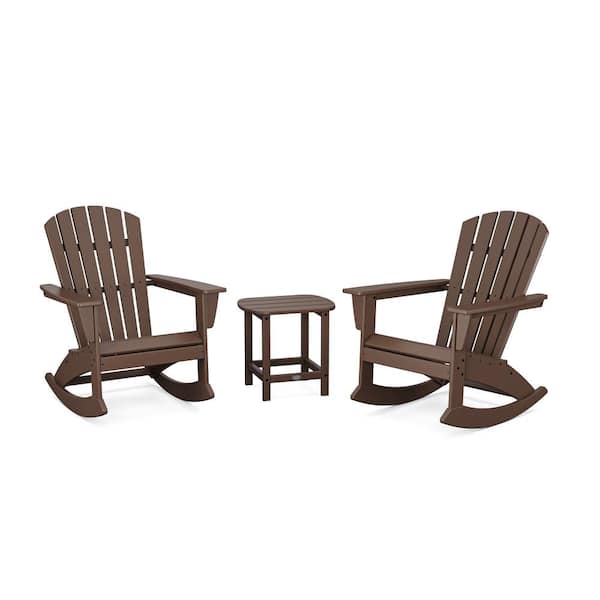 Grant Park Mahogany 3-Piece HDPE Plastic Adirondack Outdoor Rocking Chair Patio Conversation Set