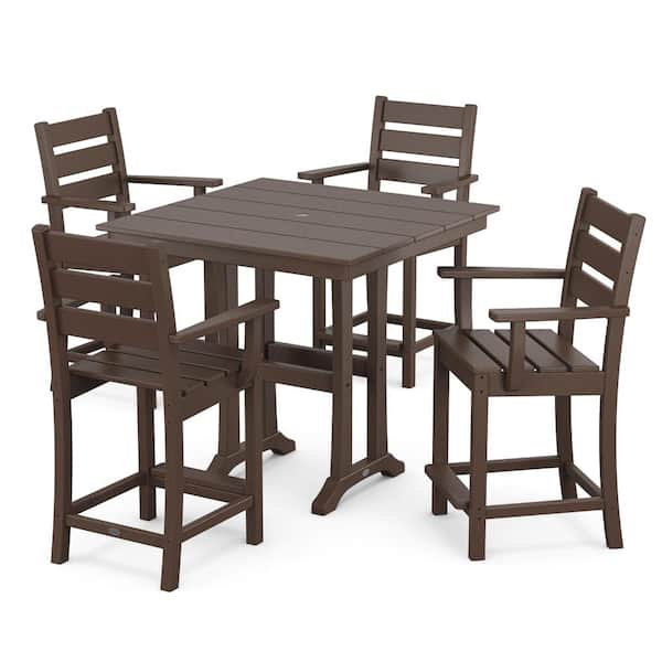 Grant Park Mahogany 5-Piece HDPE Plastic Arm Chair Farmhouse Trestle Counter Set