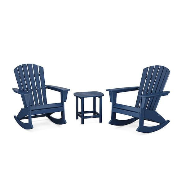 Grant Park Navy 3-Piece HDPE Plastic Adirondack Outdoor Rocking Chair Patio Conversation Set