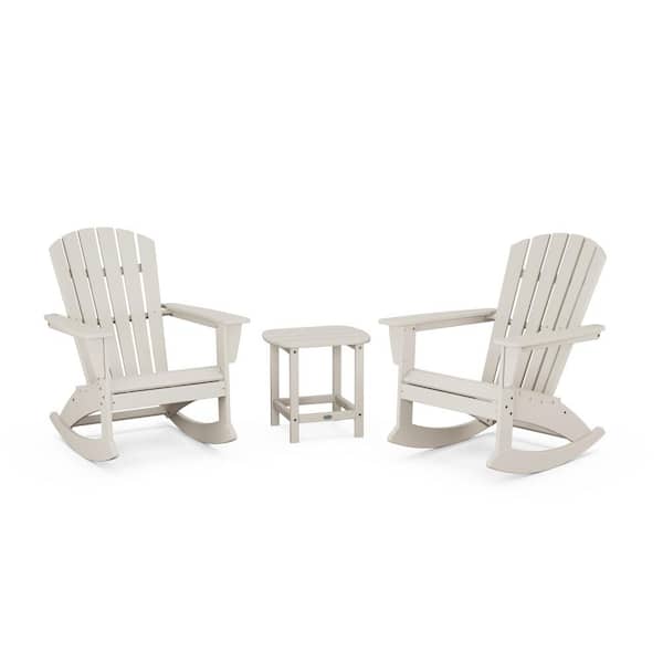 Grant Park Sand HDPE Plastic 3-Piece HDPE Plastic Adirondack Outdoor Rocking Chair Patio Conversation Set