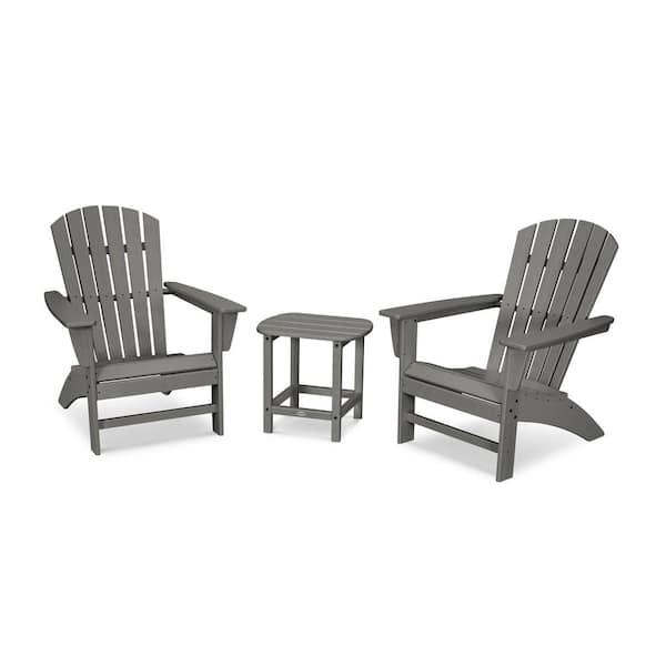 Grant Park Slate Grey 3-Piece Plastic Traditional Curveback Adirondack Patio Conversation Set