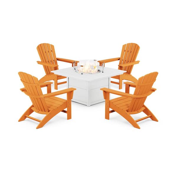 Grant Park Tangerine 5-Piece Plastic Patio Adirondack Patio Conversation Set with Patio Fire Pit Table