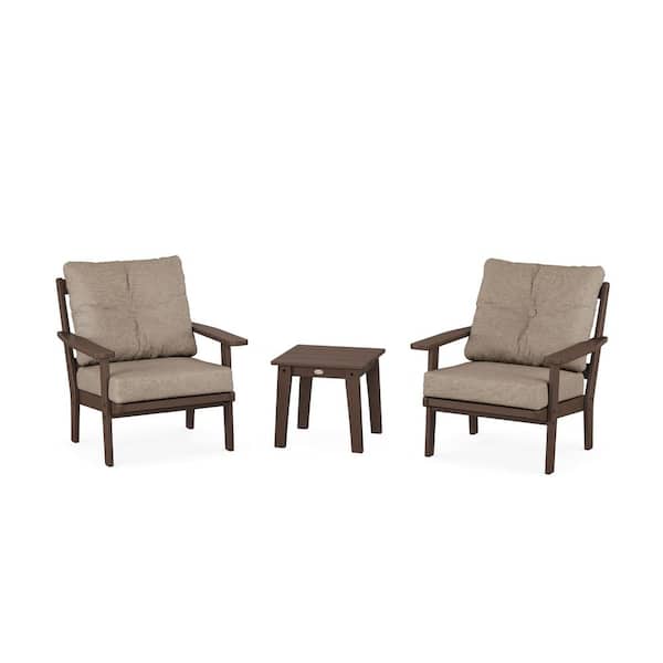 Oxford 3-Pcs Plastic Patio Conversation Set in Mahogany/Spiced Burlap Cushions